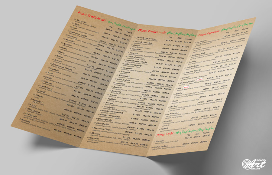 • Cardápios com Laminação Fosca ou Brilho